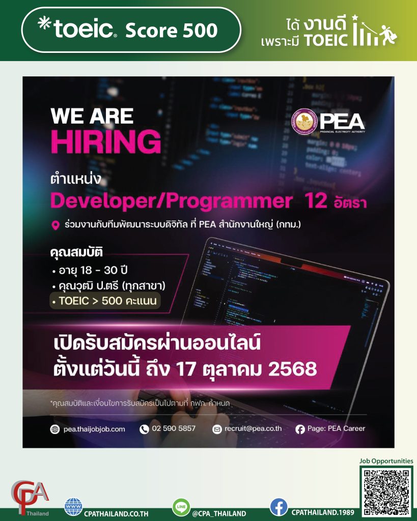 PEA เปิดรับสมัครบุคคลภายนอกเพื่อเข้าปฏิบัติงานกับ กฟภ. ประจำปี 2568