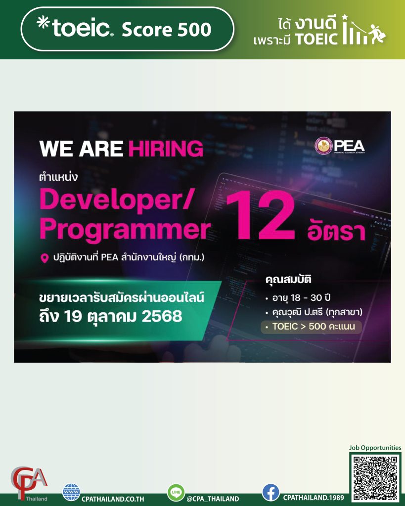 PEA เปิดรับสมัครบุคคลภายนอกเพื่อเข้าปฏิบัติงานกับ กฟภ. ประจำปี 2568