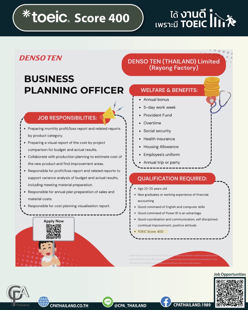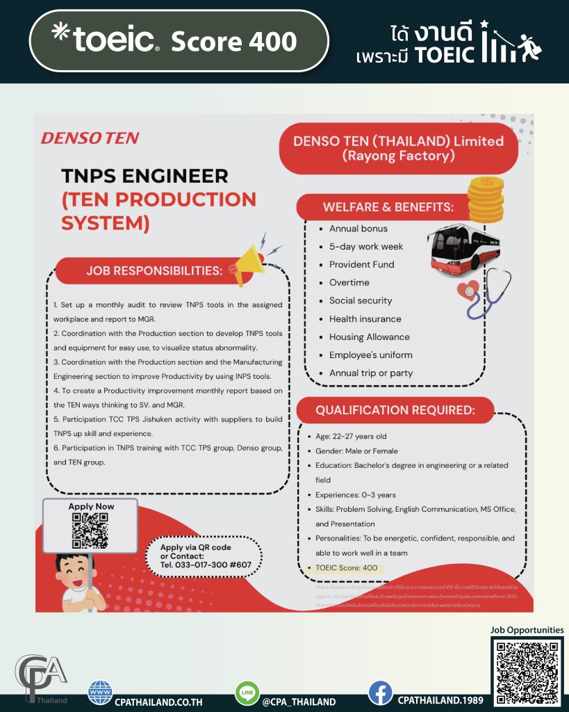 DENSO TEN (THAILAND) Limited เปิดรับสมัครพนักงานหลายตำแหน่งดังนี้