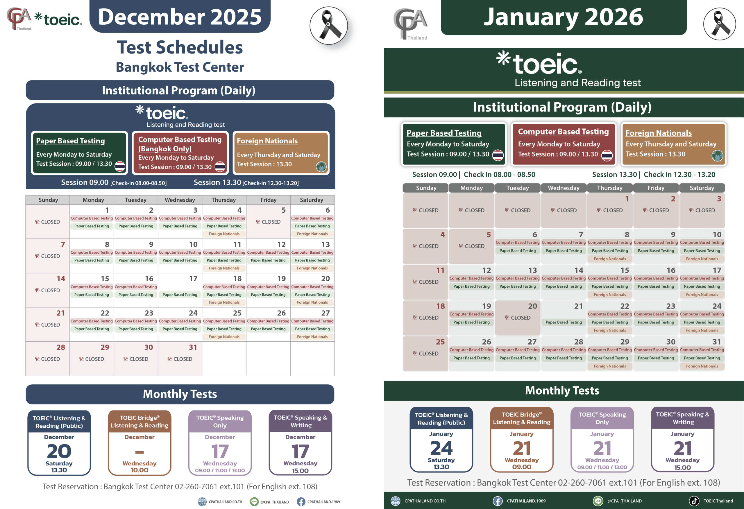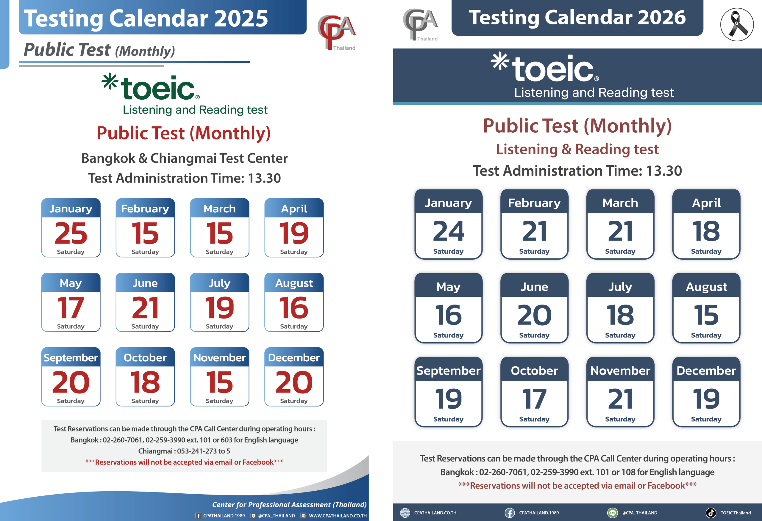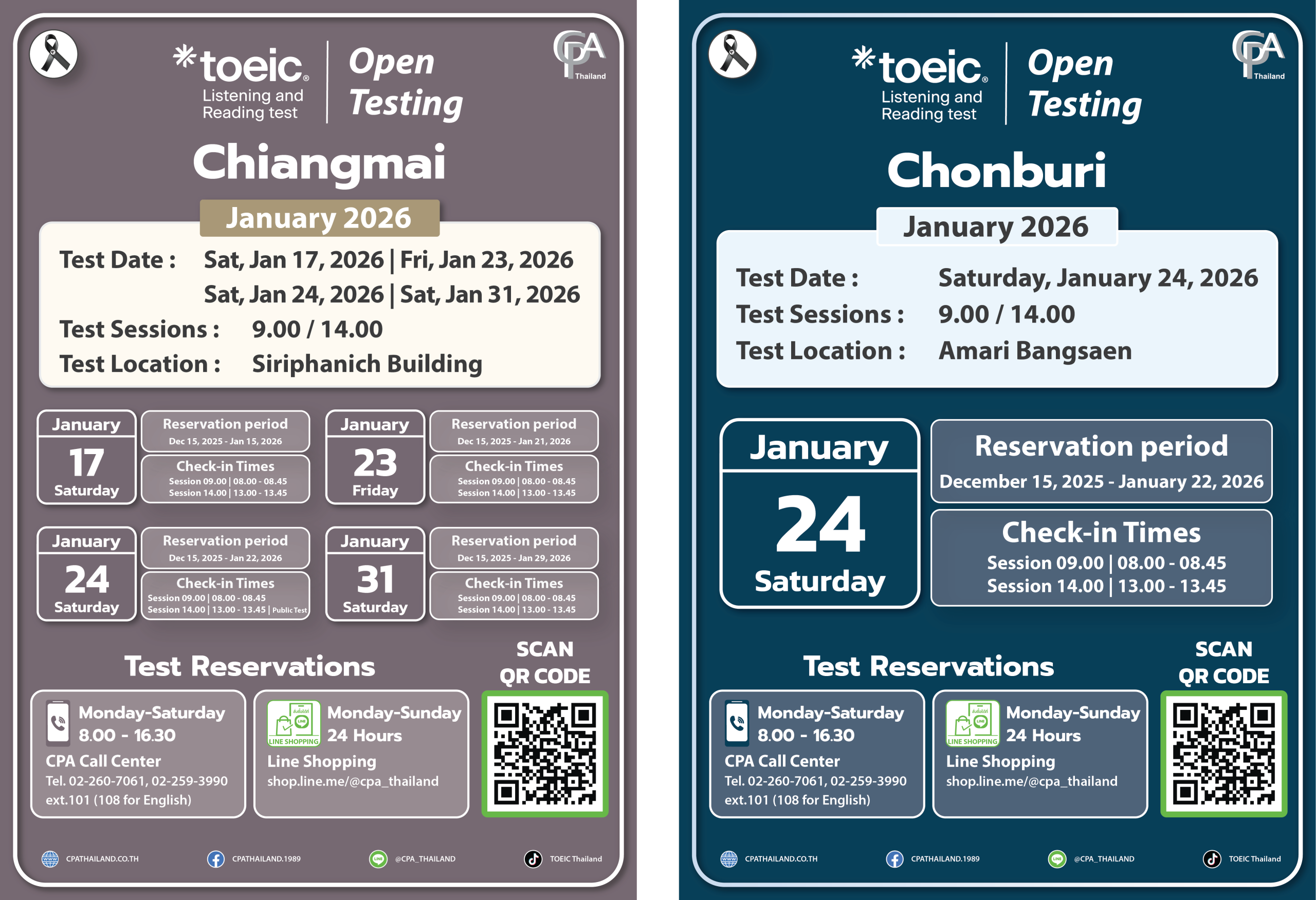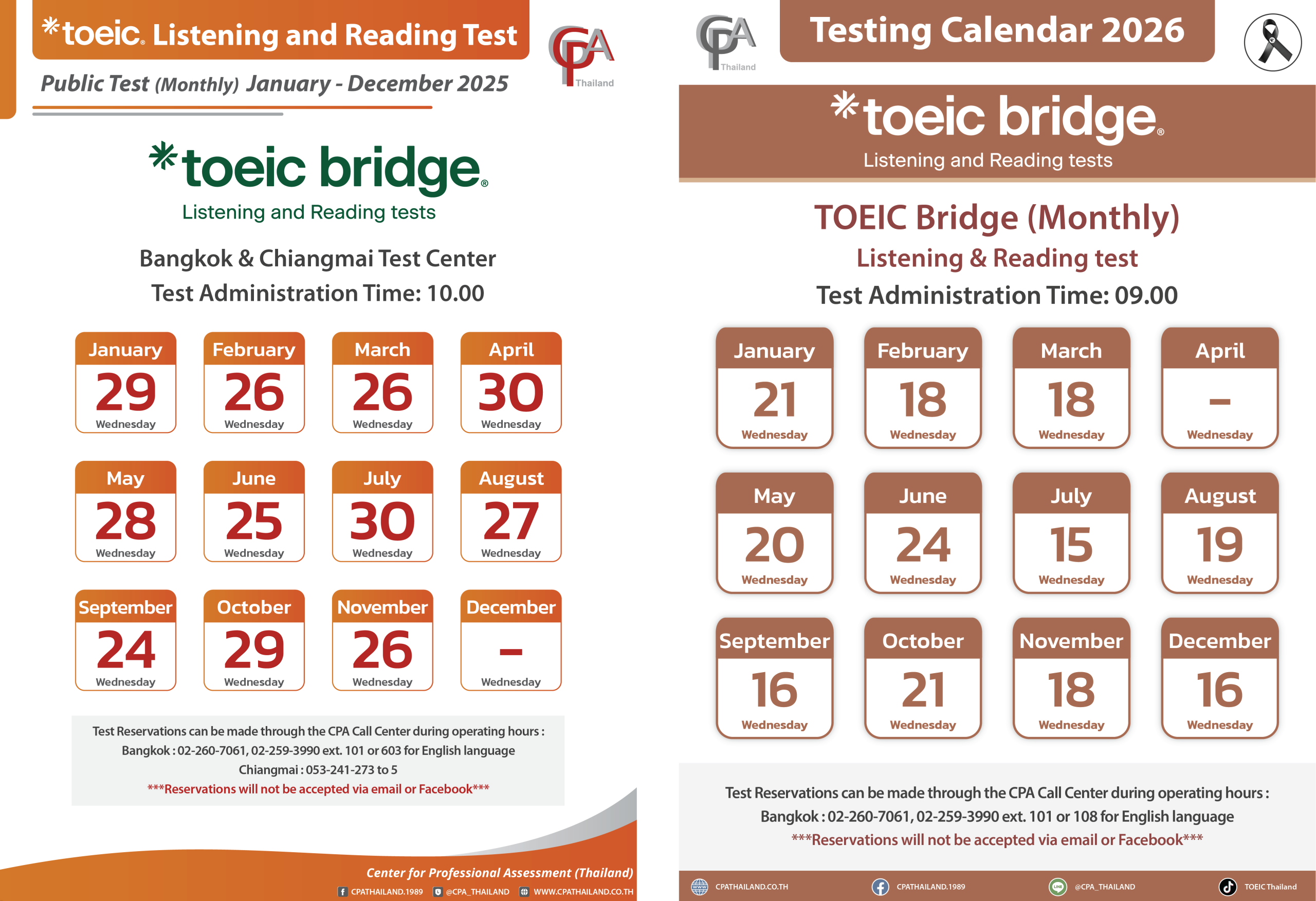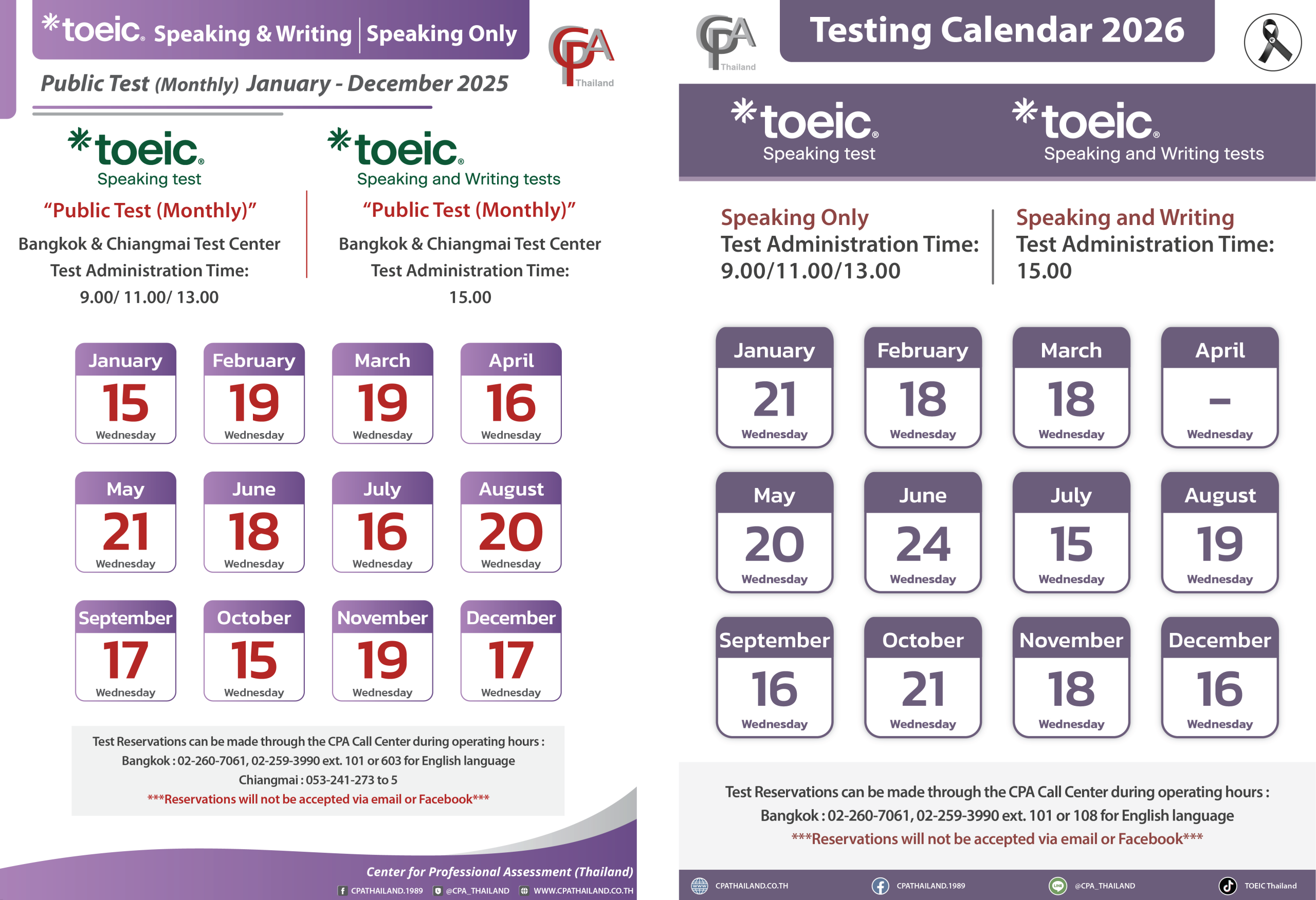 จองสอบล่วงหน้าอย่างน้อย 1 วันทำการก่อนวันสอบทาง Call Center ระหว่าง วันจันทร์-วันเสาร์ เวลา 08:00 – 16:30 น. (ไม่รับจองสอบทาง Email)
